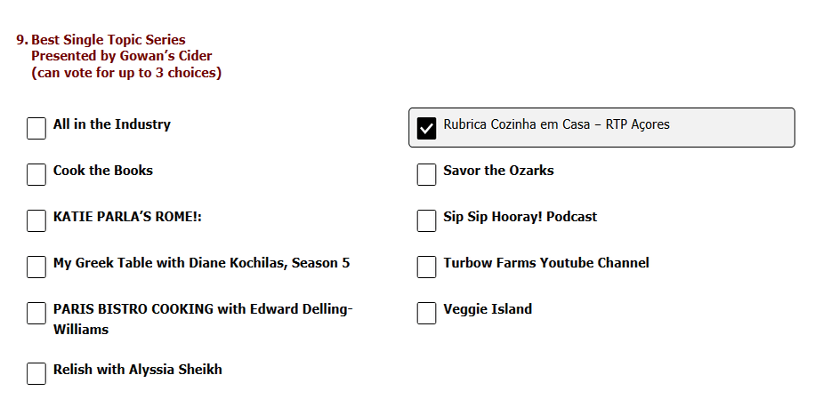 a rubrica Cozinha em Casa – RTP Açores foi reconhecida como o melhor programa regional/cidade entre concorrentes de vários países;