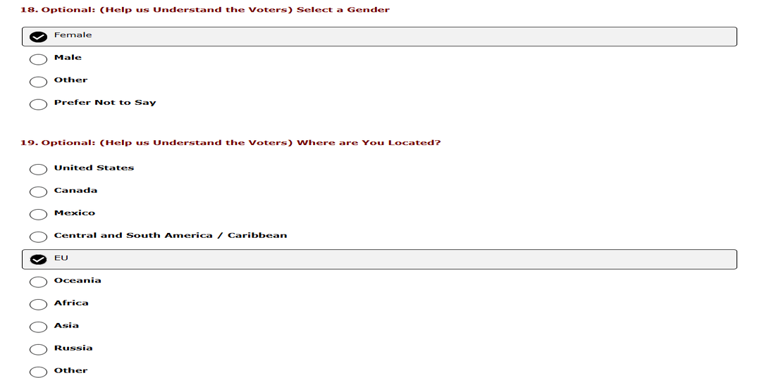 - Escolha o seu género e finalize de onde é: Europa, Estados Unidos...